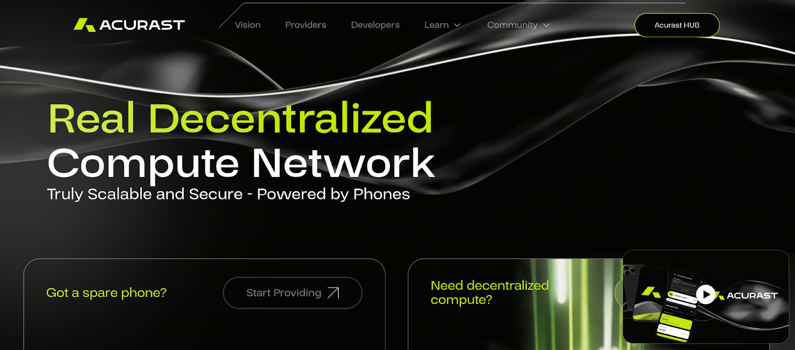 Acurastは、グローバルなコンピューティングインフラを再定義するために設計された分散型コンピューティングネットワークです。従来のクラウドサービスとは異なり、Acurastは世界中のスマートフォンを分散ノードとして活用し、開発者やAIアプリケーション、Web3エコシステムに対し、検証可能かつ機密性・拡張性の高い計算能力を提供します。このプロジェクトは、従来型データセンターによる中央集権的独占を打破し、スマートフォンなどのエッジデバイスを活用することで、よりオープンで公平なコンピューティングマーケットプレイスの創出を目指しています。