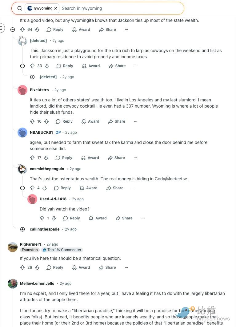 Redditのワイオミングに関する議論を覗くと、地元民の不満があちこちに見られます: