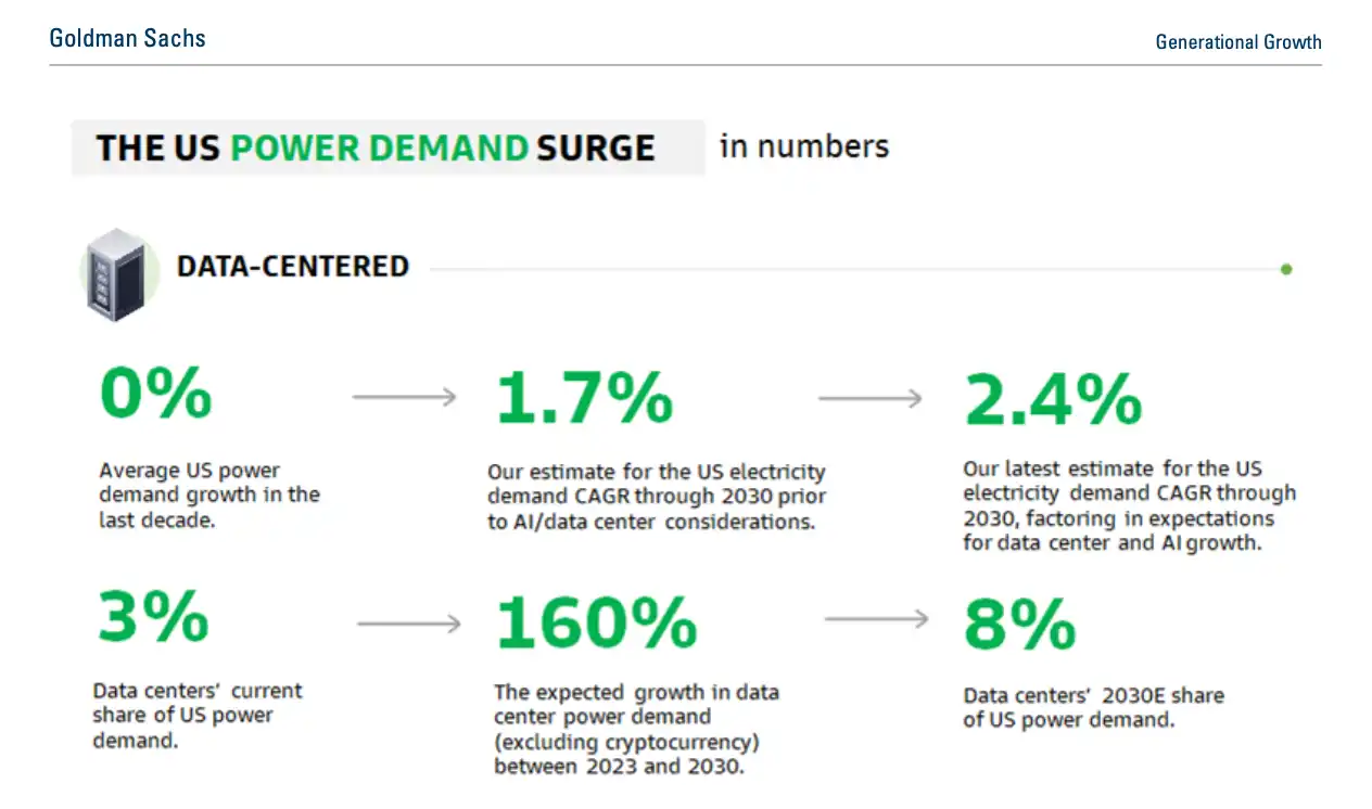 Projeção Goldman Sachs para demanda de energia em data centers nos EUA. Fonte: Goldman Sachs