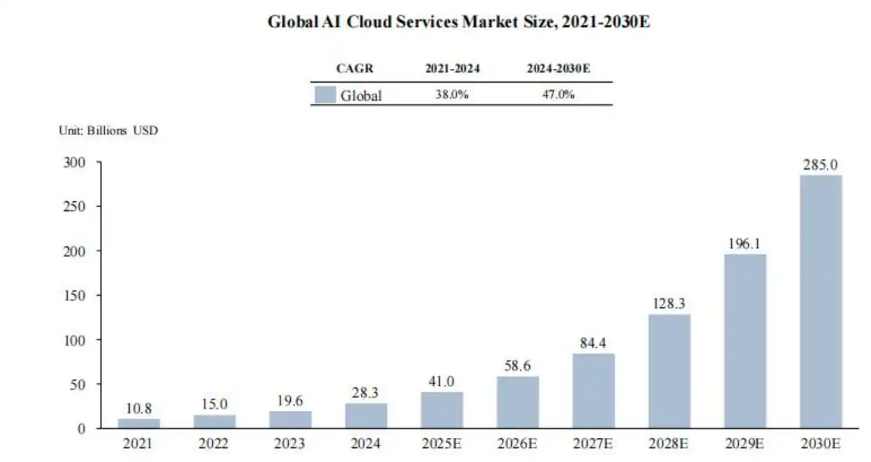 Projeção do mercado global de serviços em nuvem de IA. Fonte: Frost & Sullivan