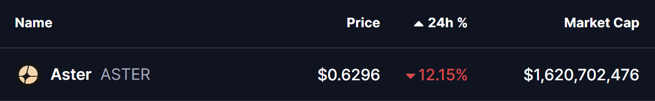 Aster (ASTER) достиг нового исторического минимума около $0.54 на фоне общего распродажи на рынке криптовалют.