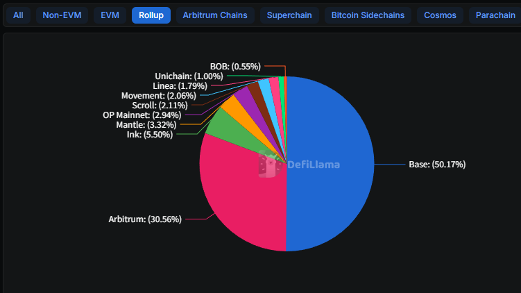 Coinbase’s L2 has grown its TVL from $3.1 billion at the start of last year to $5.6 billion, capturing half of the entire L2 market. Arbitrum has held onto 30% but has seen little growth. Most other L2s lost user activity after their airdrops ended.