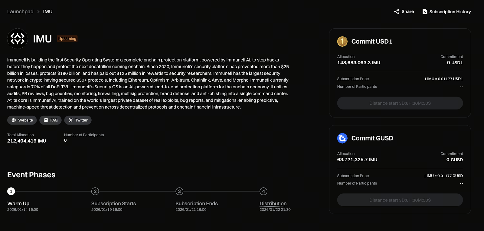 Gate 為 IMU Launchpad 用戶推出限時專屬理財福利,將新幣申購與理財收益深度結合。用戶參與 ImmuneFi (IMU) Launchpad 的同時,可同步解鎖 USD1 定期理財高年化產品,實現「新幣申購 + 理財」雙重加值。本次活動期間為 2026 年 1 月 19 日 16:00 至 1 月 26 日 16:00 (UTC+8),僅限符合資格的用戶參加,名額有限,額滿為止。