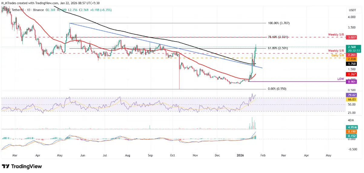 若目前的上升趨勢得以維持,AXS很可能進一步擴展反彈,挑戰每週阻力位3.02美元。