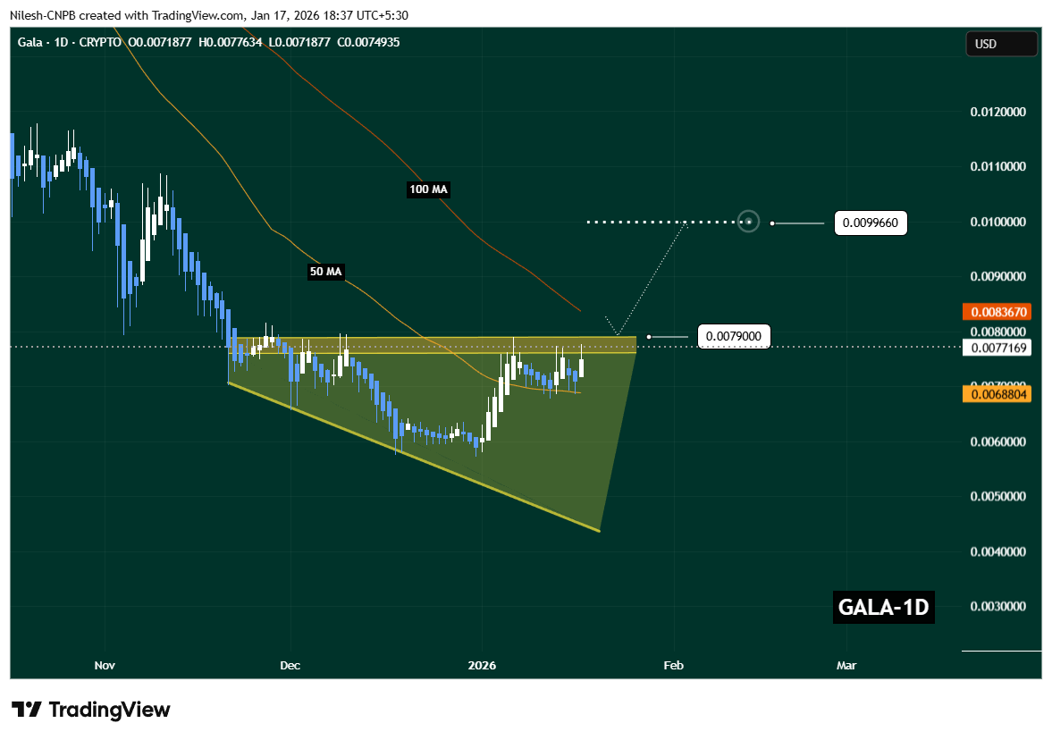 目前,$0.0076–$0.0079區域仍是市場的關鍵轉折點。價格在此範圍的反應,可能決定GALA是否能轉入持續的多頭階段,或在短期內仍將區間震盪。